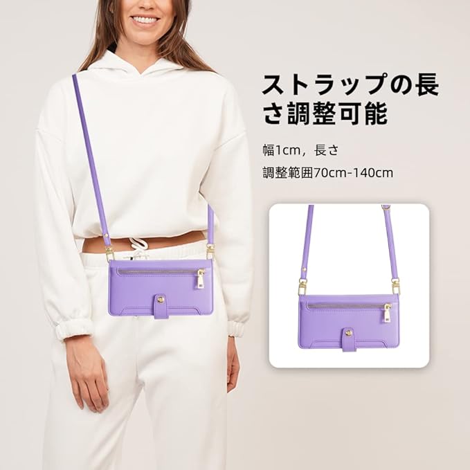 【ハンドストラップとショルダーストラップ付き】: 当ケースにはハンドストラップとショルダーストラップ/ 肩掛けストラップが配置されており、長さ調節可能なショルダーストラップで、手持ちや肩掛けが可能です。ショルダーストラップの長さは簡単に調整できます。用途に合わせて自由に長さを調整できます。特にポケットがない服が多いので、ストラップがあるとスマホをなくす心配もなく、両手が空くので首からかけられるのが便利です。ハンドバッグを持たずに、どこにでも出かけられる贅沢を味わうことができるのです。ショルダーストラップは取り外し可能で、自由に外していつでも着用感を調整できます。