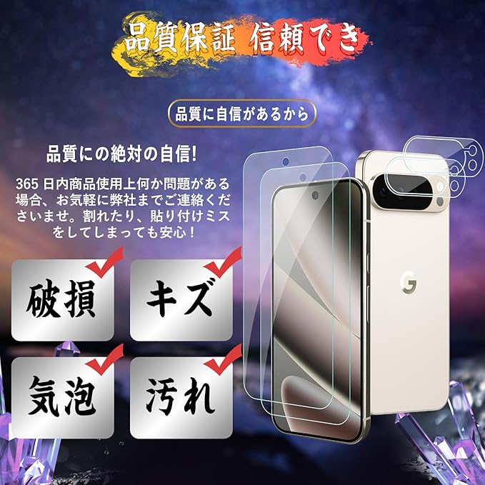 対応 Google Pixel 10 Pro XLガラスフィルム(2枚)+ Google Pixel 10 Pro XLカメラフィルム(2枚)【旭硝子素材製 】フィルム 硬度9H 貼り付け簡単 気泡防止 自動吸着 指紋防止 撥水撥油 ピクセル10 ProXL 全面保護フィルム【4枚入り】
