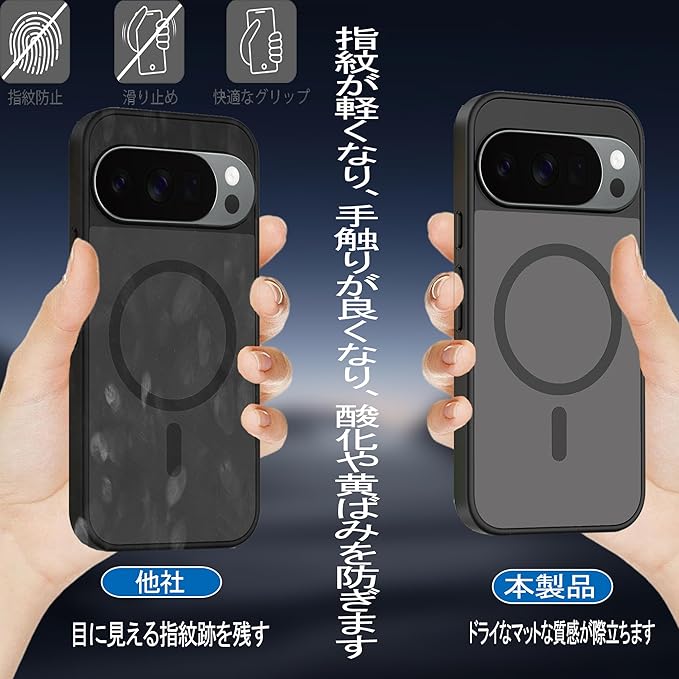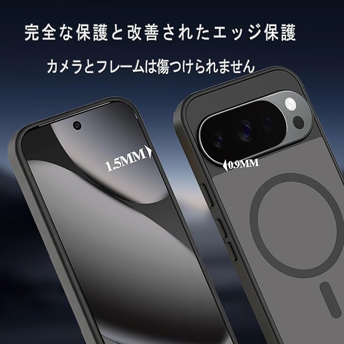 KPNS 対応 Google Pixel 10 Pro XL 用 スマホケース 米軍MIL規格 半透明のマット背面 肌触りも良い 全面保護 衝撃防止 耐久性 ワイヤレス充電 指紋防止 黄ばみなし 保護カバー(マットブラック)