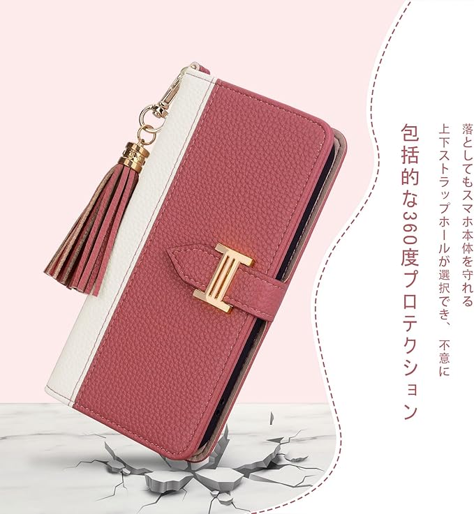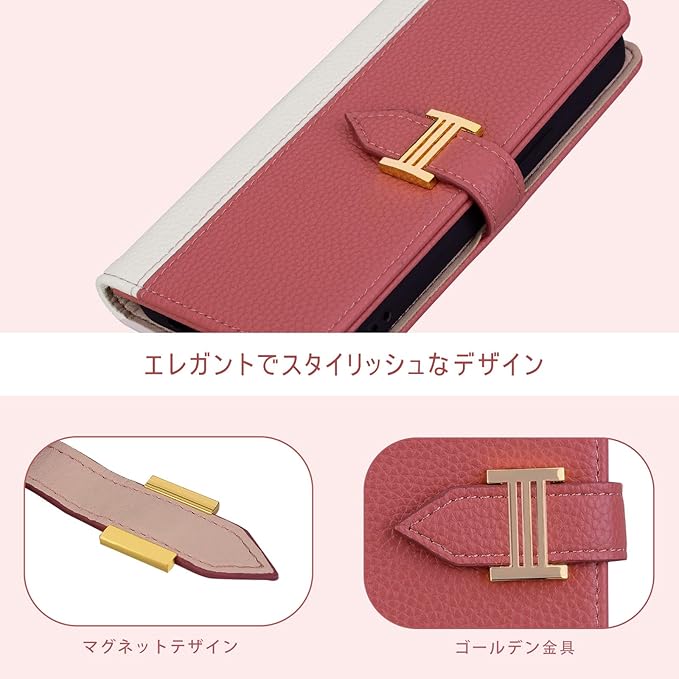 【2色のデザイン】このgoogle pixel 9 ケース 手帳型 は、エレガントでミニマルな2色のパッチワーク・デザインと、同色の小さなペンダントが特徴!