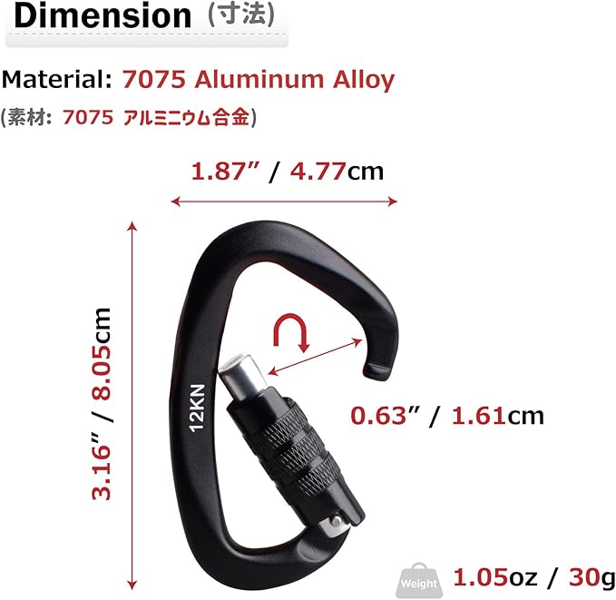 Azarxis カラビナ ロックカラビナ オートロック アルミ 耐荷重12KN 登山釦 Dリング ロッキング キーリング 脱落防止 超軽量 多機能 ハンモック キャンプ アウトドア | KAZESHOP