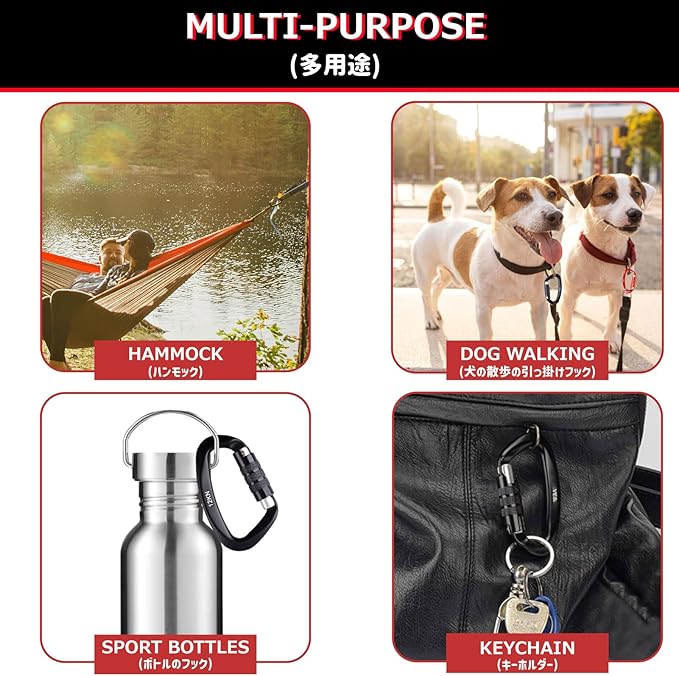 ✅【用途】:キーホルダー、セルフロック、リュックのアクセサリ、キーリング、犬の散歩の引っ掛けフックなどの生活雑貨として使えます。そしてハンモック、キャンプ、テントとタープなどの接続、ハイキング、釣り、非常時に荷物の固定の時もご活用いただけます