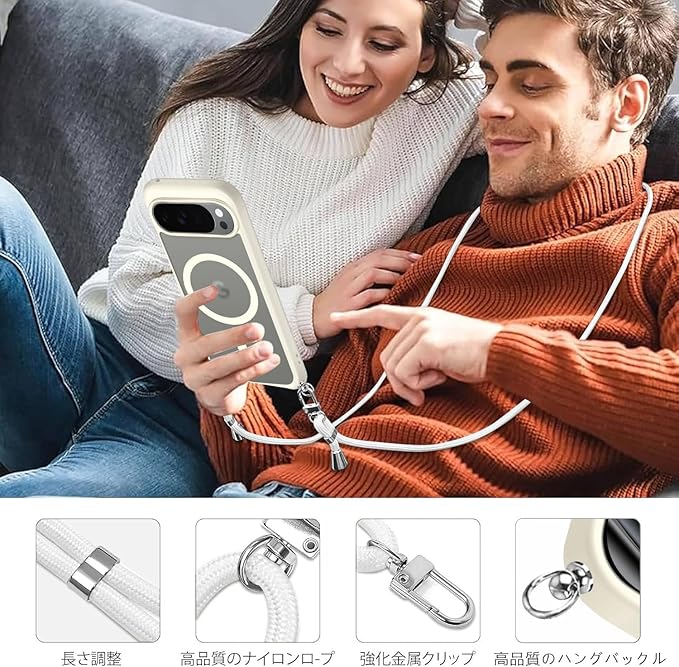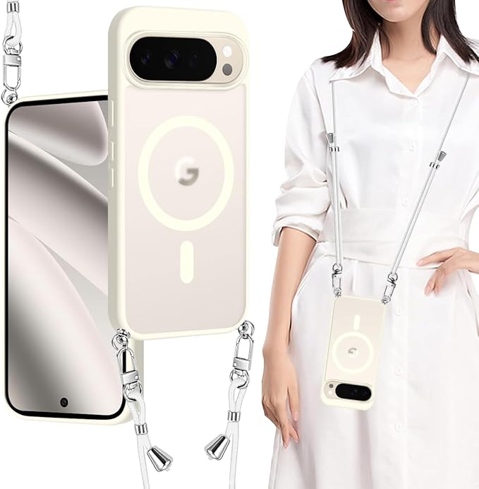 ZHIYIJIA for Google Pixel 10 / Pixel 10 Pro 用 ケース クリア ショルダー 半透明 TPU+PC ワイヤレス充電 アクリル背面 耐衝撃 マグネット搭載 ピクセル10/10pro ケース マグセーフ対応 耐久性 滑り止め 黄変防止(ホワイト) | KAZESHOP