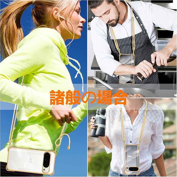 tuulaasii For Google Pixel 10 用 ケース Pixel 10 Pro 用 ケース クリア ショルダー スマホケース ピクセル 10 / 10 プロ カバー 肩掛け 縄掛け 透明 TPU 薄型 耐衝撃 携帯ケース 紐付き 斜めがけ ストラップ着脱可 長さ調整 取り外し可能 落下防止 紛失防止 かわいい おしゃれ (ゴールド) | KAZESHOP