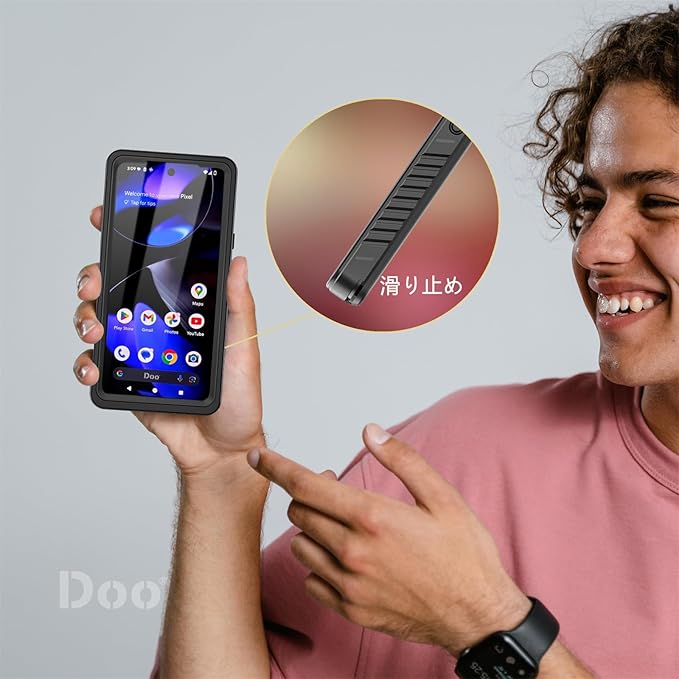 【強防衝撃力・360 保護】:軍用MIL規格810G-516防振材料が採用されていますので、衝撃にとても強いです。Google Pixel 10 Pro 防水ケースの嵌め込み式前カバーと透明バックカバーの組み合わせにより、360 全方位からGoogle Pixel 10 Pro を保護してくれます。それに、両サイドに0.5㎜ぐらいの突起があり、手元から滑り落ちることは心配なくなりません。 ご注意:ご 使用の前に必ず携帯の代わりに一枚の紙をケースに入れて、Pixel 10 Pro 防水ケースは水没して30分間の防水試験を行 ってください