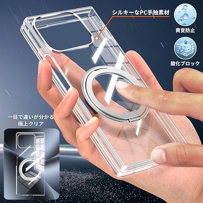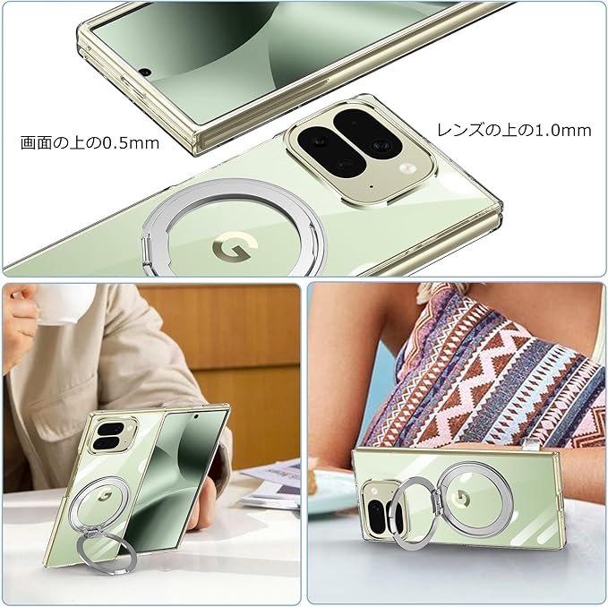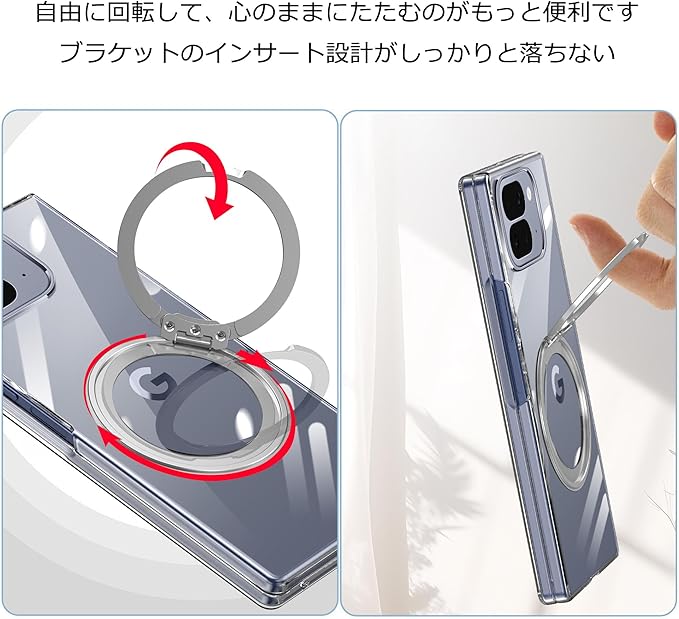 Google Pixel 10 Pro Fold ケース クリア 多機能360度回転スタンド マグネット搭載 角度調整 縦横両対応 グーグル ピクセル10 プロ フォールド カバー リング付き ケース 耐衝撃 TPU スマホケース 多機能 透明 軽量 薄型【クリア】