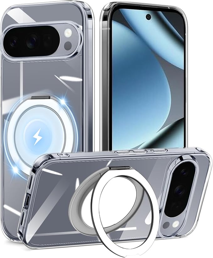 Pixel 10 Pro XL ケース クリア リング付き 360 回転スタンド MagSafe対応 ワイアレス充電対応 耐衝撃 ピクセル 10Pro XL カバー 薄型 軽量 人気 pixel 10 pro xl スマホケース 透明 PC 車載ホルダー対応 (クリア) | KAZESHOP