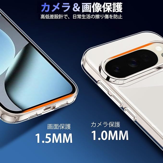 【安心保護】前面と背面カメラ部のフチを高く設計し、液晶画面とカメラレンズをキズから保護します。破損リスクを低減、高額の修理費用を節約。
