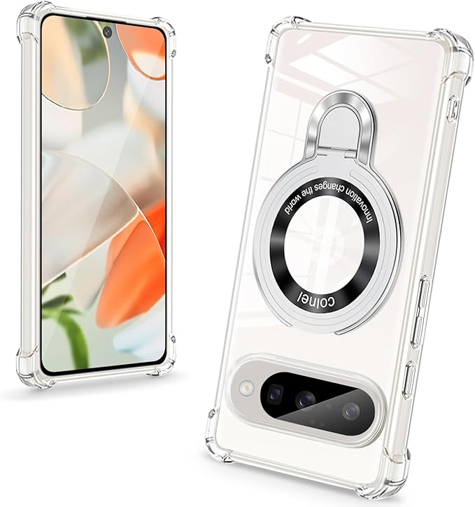 Google Pixel 10 Pro ケース クリア リング付き MagSafe対応 マグネット搭載 縦横両対応 アジャスタブルスタンド 四角エアクッション 耐衝撃 スマホ ケース Google Pixel 10 Pro カバー 衝撃吸収ポケット内蔵 TPU 薄型軽量 全面保護 | KAZESHOP