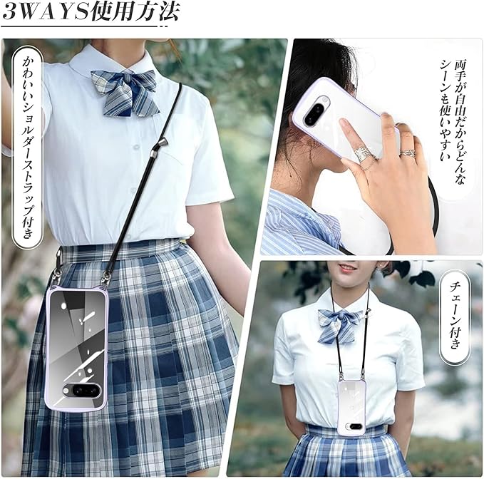Guokaien Google Pixel 10/10 Pro 用の ケース クリア ショルダー ピクセル 10/10pro カバー スマホケース 耐衝撃 透明 TPU ストラップ付き 肩掛け 首掛け 紐付き 斜めがけ メッキ加工 取り外し可能 長さ調整可能(ライトパープル) | KAZESHOP