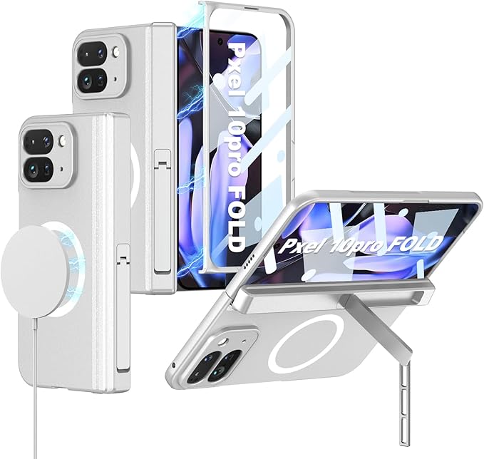 Google Pixel 10 Pro Fold 専用 ケース MagSafe対応 ヒンジ保護 ピクセル10 pro fold カバー OURJOY スマホケース ガラスフィルム付き 高感度 全面保護 スタンド付き カメラレンズ保護 ワイヤレス充電 ストラップホール付き 耐衝撃 おしゃれ・シルバー | KAZESHOP
