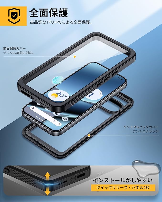【簡単に装着・脱着】斬新な設計による簡単装着・脱着。高級感を損なわない一体感を実現、前面フレームと背面プレート分離した設計。薄型&軽量:ピクセル 10 プロ防水ケースを入れたまま、手持ちが良く、長く持っても手が疲れる感じもありません。握った感じも滑ることはなく、しっかり手に馴染みます。