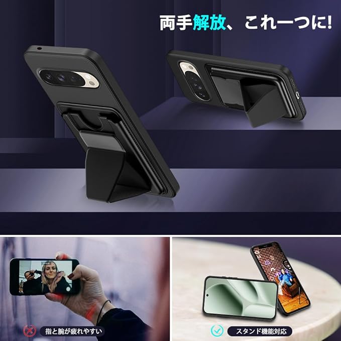 【縦置き/横置きスタンド】ハンズフリーでスマホをお楽しみいただけるスタンド機能は、安定感があるだけでなく、用途に合わせて縦横いずれでも可能。Skype/Face Timeなどのビデオ通話、SNSやニュースの閲覧には縦で使用、Youtubeや動画の閲覧には横で使用するなど、使い分けることでスマホの使用がもっと快適に!