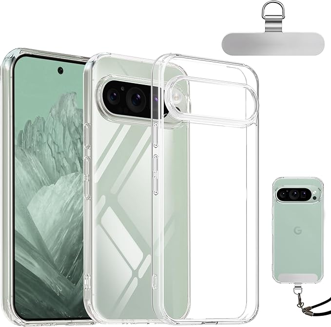 Kakuki for Pixel 9 Pro XL ケース+ ステンレス製 スマホ ストラップホルダー ピクセル9 Pro XL 黄ばみ無し 透明PC+TPU 保護カバー レンズ保護 薄型 指紋防止 黄変防止 落下防止 軽量 全面保護カバー (Pixel 9 Pro XL)