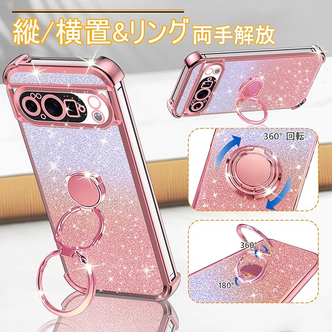 【多機能一体型スマホケース・360度回転スタンド付き】弊社のGoogle Pixel 10 Proケースはリング一体型設計です。市販されている一般的なスマートフォンリングは短くて小さく、さまざまな角度に調整できません。弊社の製品は360 回転のベース、180 回転第一リングと330 回転第二リングを備えた新しいデザインを採用しています。独創的なリング構造は4500回の折り畳みテストを経ても安定してゆるまず、縦方向でも横方向でも安定して使用できる。横長・縦長の画面表示、ビデオ会議、ライブ放送の撮影など、さまざまなシナリオに非常に適しています。