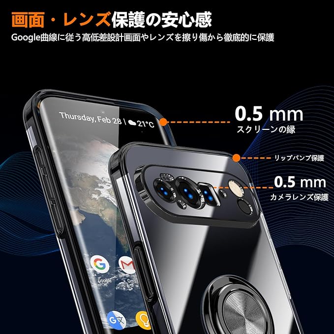 QOUNVYW 対応 Google Pixel 10 Pro XL 用 ケース リング付き クリア 耐衝撃 スタンド機能 透明 TPU 車載ホルダー対応 落下防止 防塵 薄型 軽量 一体型 変形防止 保護カバー ピクセル 10 プロ XL 用 カバー 黒 W-YXZH-89-01 | KAZESHOP