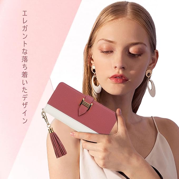 【2色のデザイン】このgoogle pixel 9 ケース 手帳型 は、エレガントでミニマルな2色のパッチワーク・デザインと、同色の小さなペンダントが特徴!