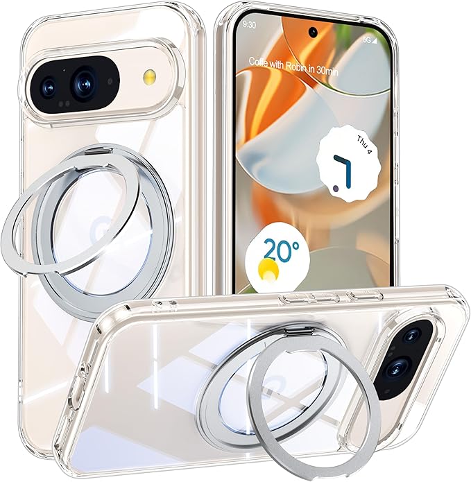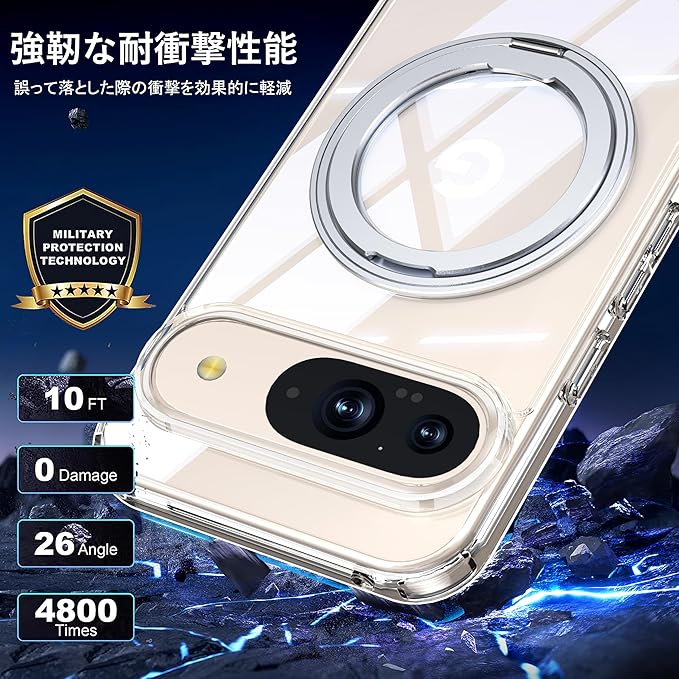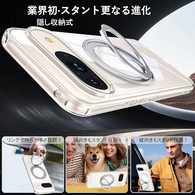 Google Pixel 9 / Pixel 9 Pro 用 ケース Magsafe対応 ピクセル9 プロ カバー 360 回転スタンド Uovon スマホケース 携帯ケース ワイヤレス充電 車載ホルダー 対応 ストラップ穴付き 透明 指紋防止 黄变防止 ・ クリア | KAZESHOP