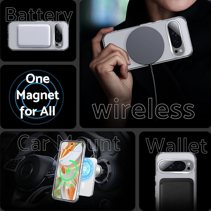 【磁力アップグレード】DASFOND N52磁気リング構造、磁力は公式N48より2倍強力です。アップグレードされたテクノロジーのサポートにより、充電がより安定し、充電時間が短縮されます。また、pixel 9 pro xl マグセーフ ケースは、すべての MagSafe アクセサリおよびその他の Qi 認定ワイヤレス充電器 (カー マウント、ワイヤレス パワー バンク、磁気ウォレットなど) と完全に互換性があります。