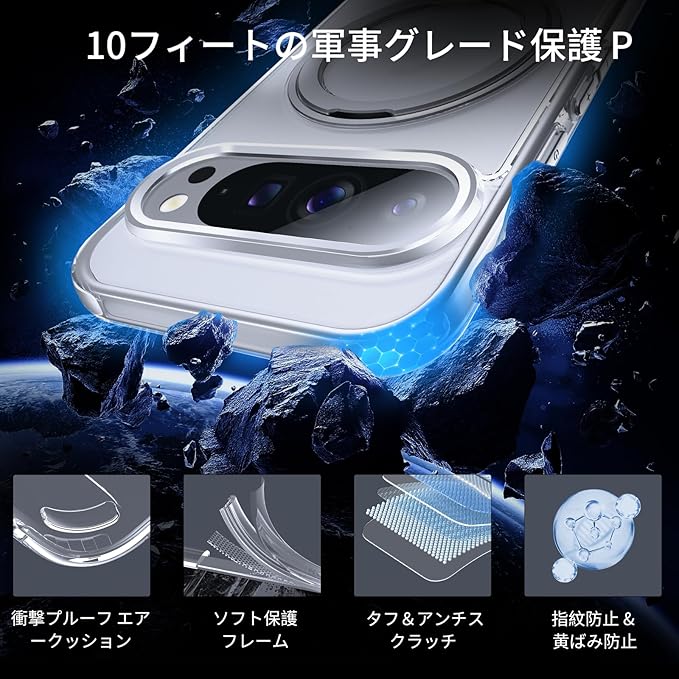 DASFOND Google Pixel 9 Pro XL ケース [MagSafe 対応] 米軍MIL規格の落下防止 360 回転式リングキックスタンド 透明電話ケース グーグルピクセル9プロXL カバー 6.8 インチ クリア | KAZESHOP