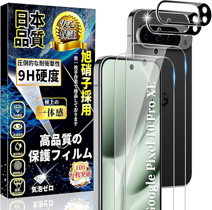 対応 Google Pixel 10 Pro XL ガラスフィルム(2枚)+ グーグル ピクセル 10 ProXL カメラフィルム(2枚) Google Pixel 10 Pro 液晶保護フィルム 旭硝子素材製 硬度9H 気泡ゼロ 高透過率 飛散防止 貼り付け簡単 ピクセル10 Pro XL 保護フィルム+レンズ保護 フィルム | KAZESHOP