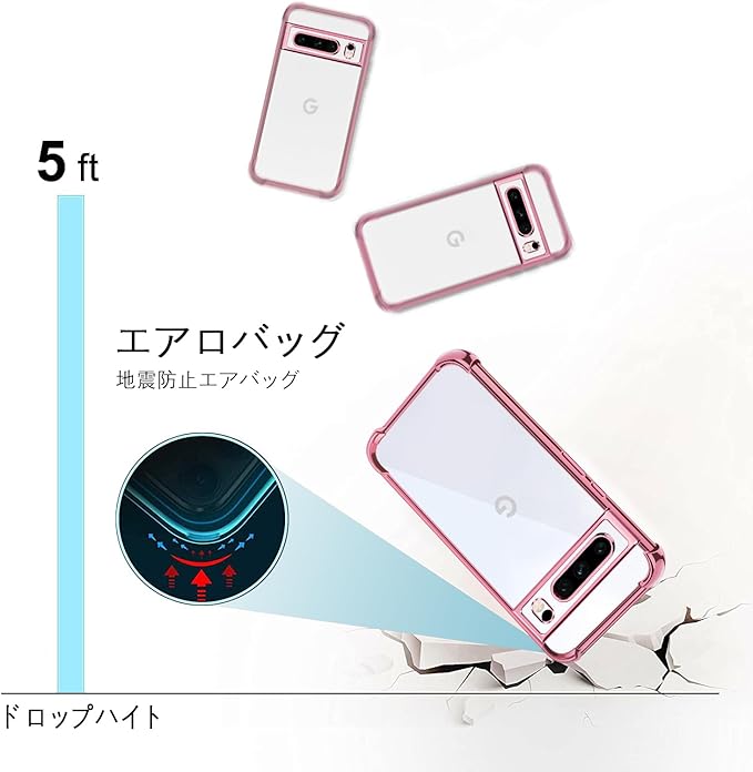 Google Pixel 8 pro ケース クリア 耐衝撃 グーグル ピクセル8 proバンパー スマホケース tpu 軽薄型 ストラップホール付き 衝撃吸収 シリコンケース 軽量 カメラレンズ保護 米軍MIL規格カバー case(ローズゴールド) | KAZESHOP