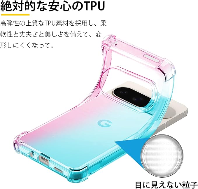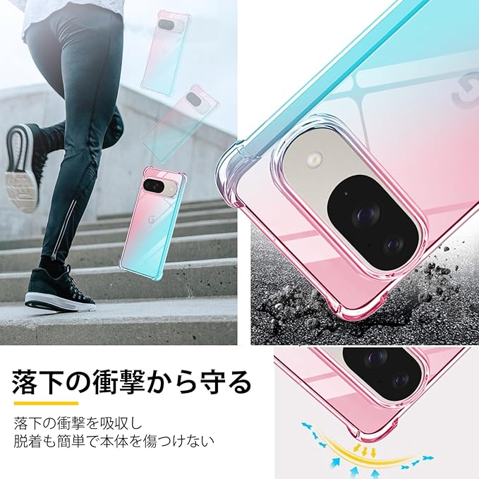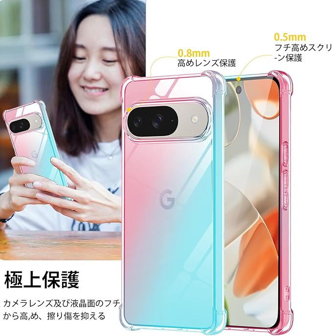 対応 Google Pixel 9 / Pixel 9 Pro 用 ケース クリア TPU 薄型 軽量 耐衝撃 米軍MIL規格取得 滑り止め 黄変防止 防塵 一体型 人気 携帯カバー(ピンクグリーン) | KAZESHOP