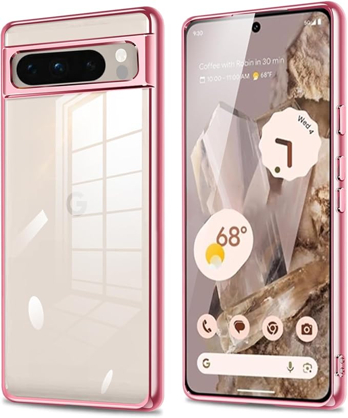 fuweisitong 用の Google pixel 8 Pro ケース クリア 透明 スマホケース カバー 耐衝撃 柔軟 薄型 液晶保護 ソフト tpu メッキ加工(ローズゴールド) | KAZESHOP