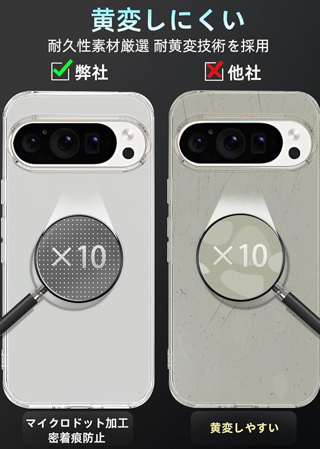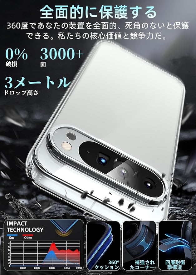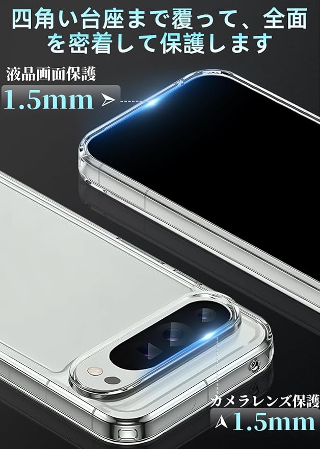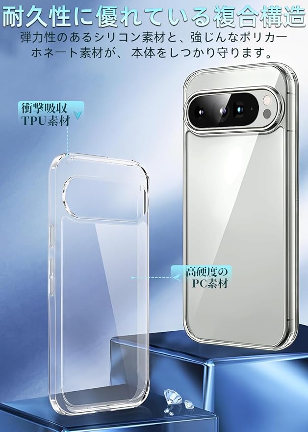 【対応機種】Pixel 9 Pro XL 用【超高耐衝撃性】角部分にAIRクッション搭載により、落下時の衝撃を瓦解・吸収する効果があり、いくら落としても布団に飛び込んだみたいな感触を与えます。背面は硬いPC素材で作られて側面はSGS認証されたの最高級TPU素材を採用して弾力性があり脱着しやすくて落下などの衝撃を分散・吸収できます。装着の際に本体を傷つける心配もありません。高い耐衝撃性を持て、携帯電話をしっかりと守ります。