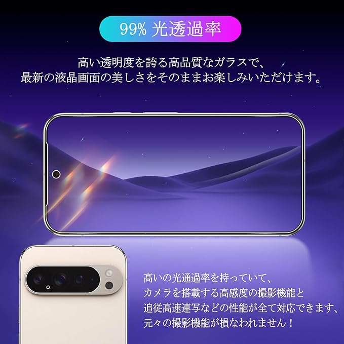 ☺☞【極薄・超クリア・感度が高い】Google Pixel10 Pro XL 保護フィルムは、通常の液晶保護フィルムよりも高級なガラスを採用して作られており、高精細で透明な保護フィルムが最高な解像度があることを確保し、透明度も高くて99%に達し、高透明度で高精細な見る体験を現実しました。Pixel 8 画面のオリジナルの写真品質を維持できるカメラ レンズ プロテクターは、ユーザー様にとてもクリアな表示と写真撮影の体験を与えます。そして厚さが0.26mmの極薄強化ガラススクリーンプロテクターは最高レベルで画面保護を実施しながら、本来の感度と触感を保持して、優れた使用体験をもたらします。