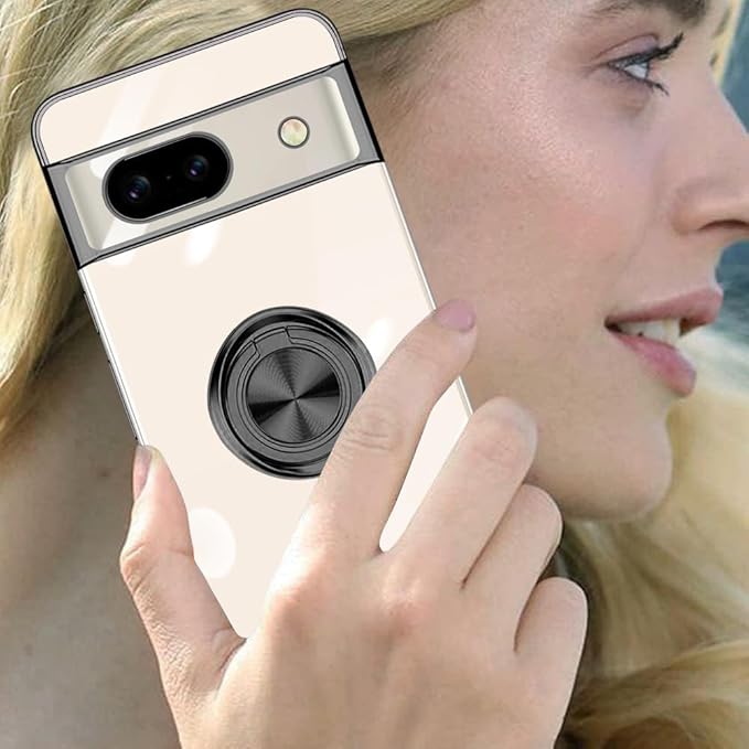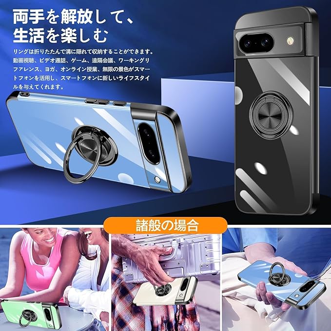 Google Pixel 9 Pro XL ケース リング付き クリア Pixel9Pro XL ケース 耐衝撃 スタンド機能 ストラップホール付き 軽量 スリム ソフト TPU ピクセル 9pro xl カバー 透明 TPU 擦り傷防止 落下防止 (ブラック) | KAZESHOP
