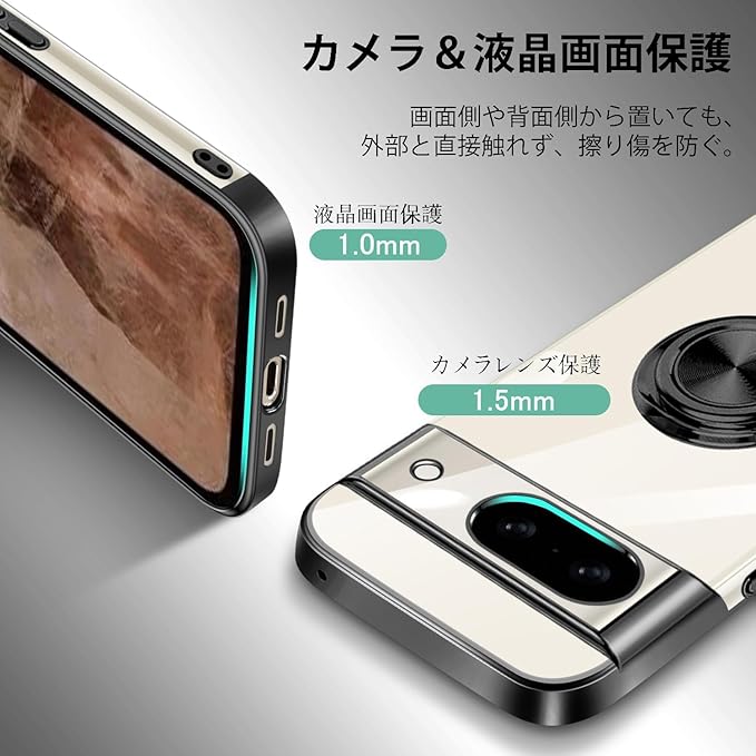 【スタンド機能】後ろに付いているフィンガーリングはスタンド機能はもちろん、滑りにくくて持ちやすい、安定的なグリップが特徴です。リングはケースにしっかり固定されていて。360度回転可能、180角度調節可能、携帯電話でビデオを見るのはとても便利です