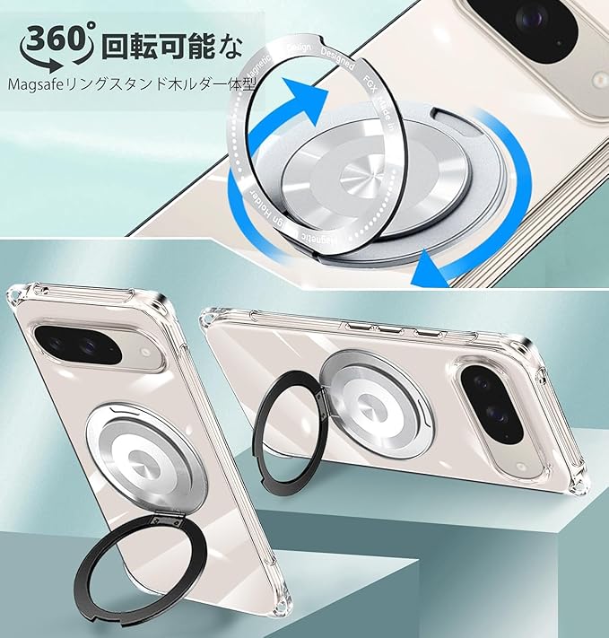 Google pixel 9 ケース pixel 9 pro ケース クリア 透明 MagSafe対応 マグセーフ ワイヤレス充電 リング付き スタンド機能 ストラップ付き 調節可能な ショルダー マグネット搭載 ストラップホール付き グーグルピクセル 9/9 Pro ケース 肩がけ 首掛け 紐付き スマホケース ストラップホール付き 耐衝撃 全面保護 カバー (クリア) | KAZESHOP