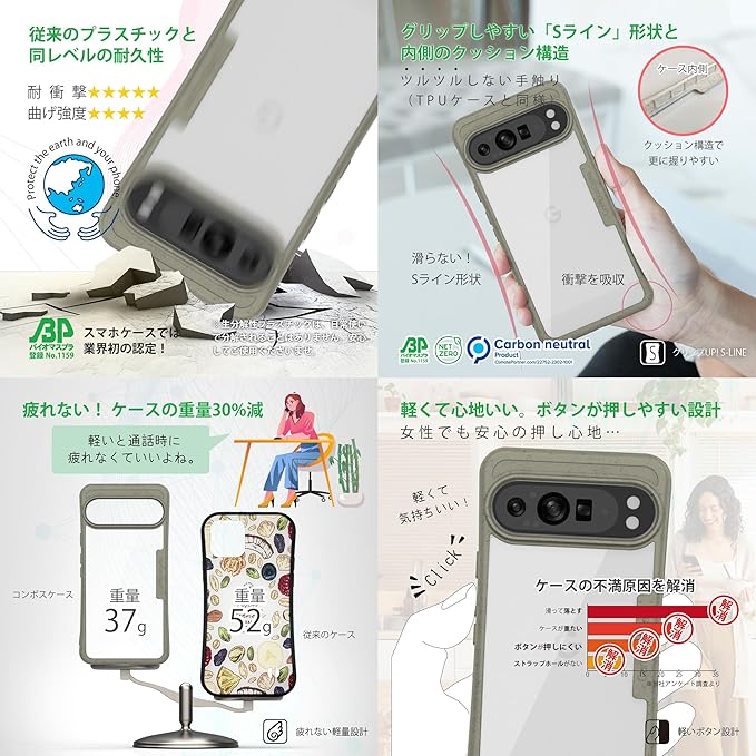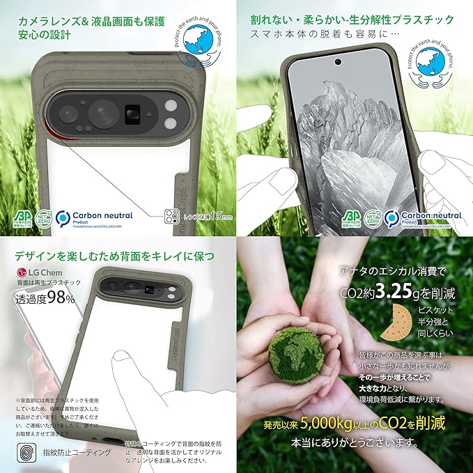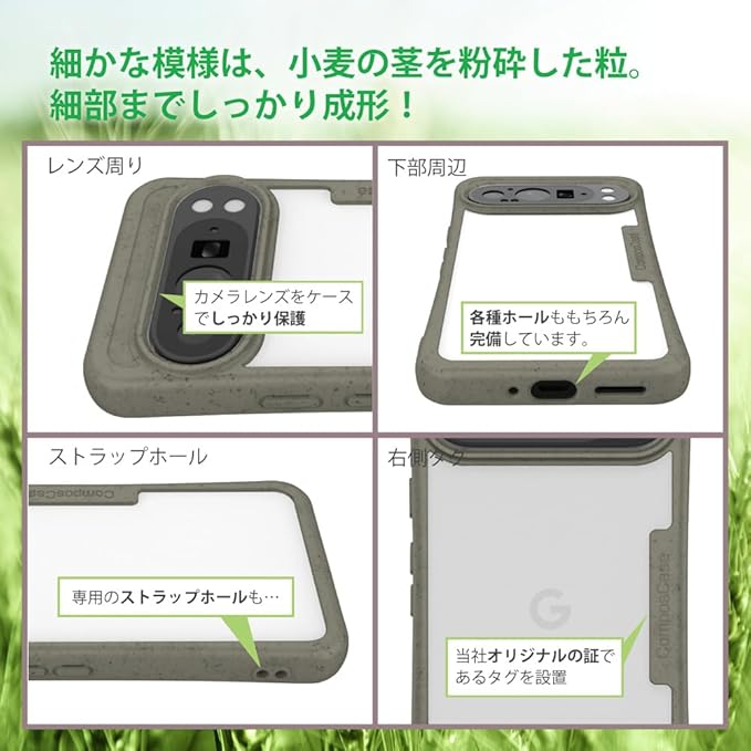 AnglersLife コンポスケース Google Pixel 9 Pro ケース クリア 生分解性 スマホケース スマホショルダー グーグル ピクセル9 プロ カバー モスグリーン | KAZESHOP