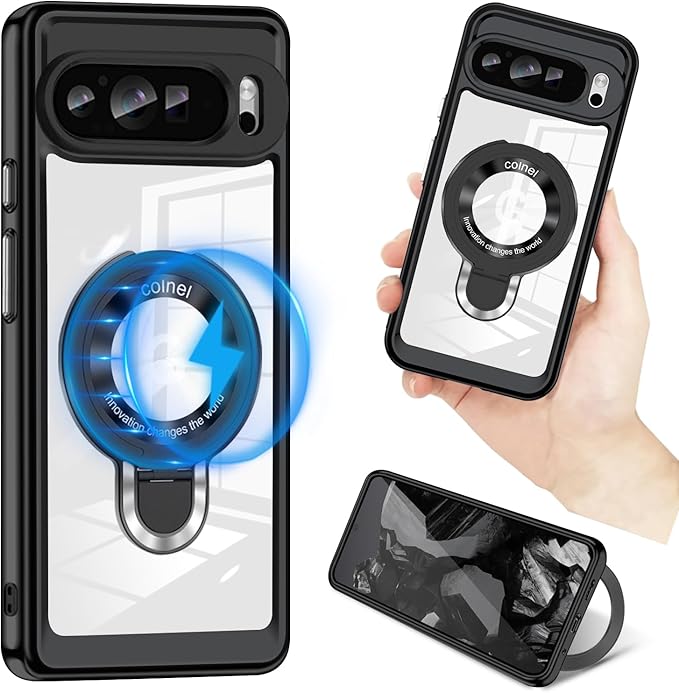 Google Pixel 9 PRO XL ケース クリア MagSafe対応 丸型スタンド付き マグネット搭載 グーグルピクセル9 pro xl ケース 多機能Magsafeスタンド 縦横両対応 tpu pc 二重構造 耐衝撃 メッキ加工 ワイヤレス充電 車載ホルダー 対応 Google Pixel 9 Pro XL 携帯ケース | KAZESHOP