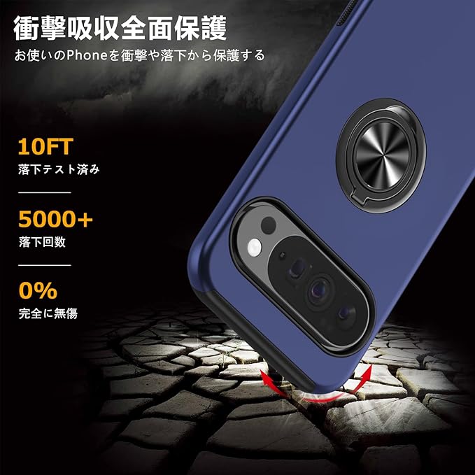 Tgaoleyd 対応 Google Pixel 10 Pro XL 用のケース リング付き 耐衝撃 tpu フルプロテクトデザイン スマホカバー スタンド機能 グーグル ピクセル10 pro xl 用のケース 全面保護 擦り傷防止 落下防止 米軍MIL規格 車載ホルダー対応 取り出し易い オシャレ 人気 携帯カバー 青 D-A09-52 | KAZESHOP