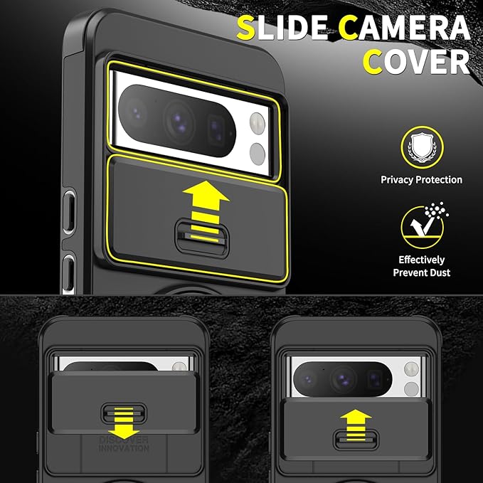 Anlalish携帯ケース 適用する Google Pixel 9 Pro XL ケース 持っているカメラ保護 耐衝撃 Google Pixel 9 Pro XL スマホカバー リング人 気 オシャレ車載ホルダー 対応 スライド 保護 カード (黒) | KAZESHOP