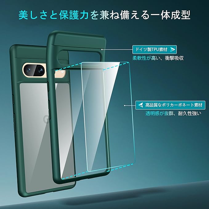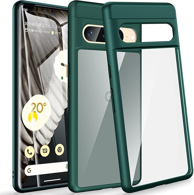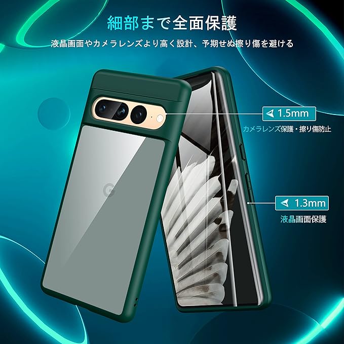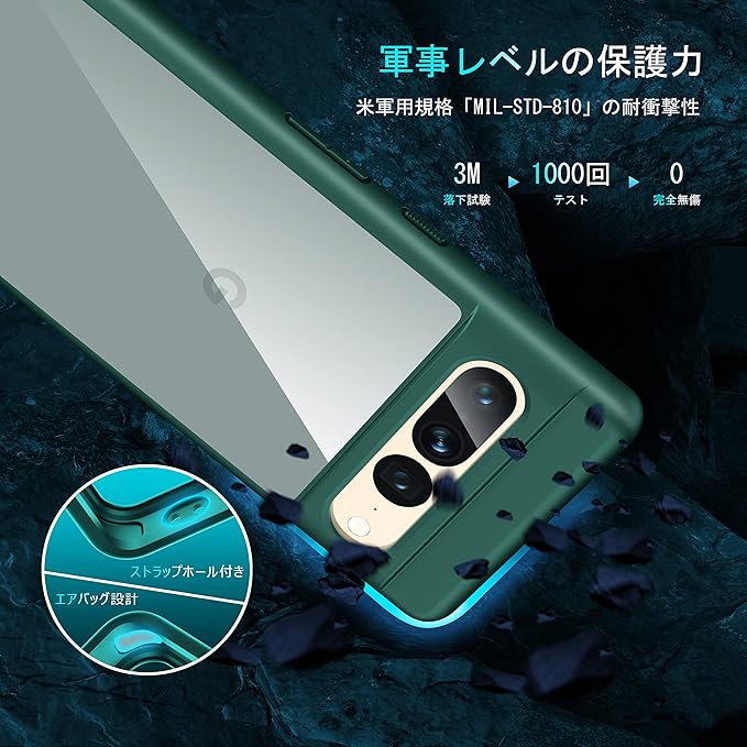 Google Pixel7 Pro 用 ケース クリア 耐衝撃 米軍MIL規格取得 SGS認証 黄ばみなし レンズ保護 滑り止め 指紋防止 薄型 軽量 ストラップホール付き ピクセル7 Pro 用カバー グリーン Crystal Series | KAZESHOP