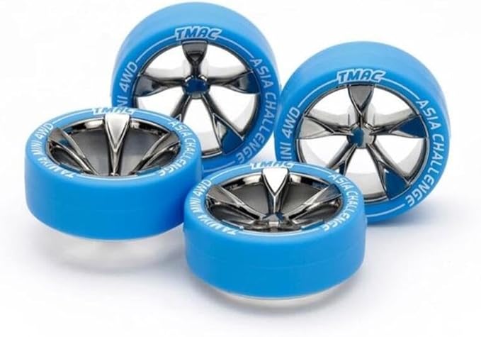 ミニ四駆 海外限定 TMAC アジアチャレンジ 2024 ローハイトタイヤ & 5本 スポーク ホイールセット 中経 小径 95654 Small Dia Low Profile Tire Black Plated 5 Spoke Wheel Set Asia Ver | KAZESHOP
