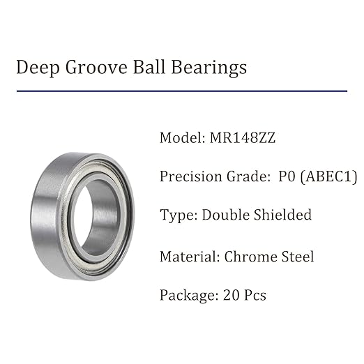 1- パッケージ内容 - 20個8 mm x 14 mm x 4 mm深溝玉軸受