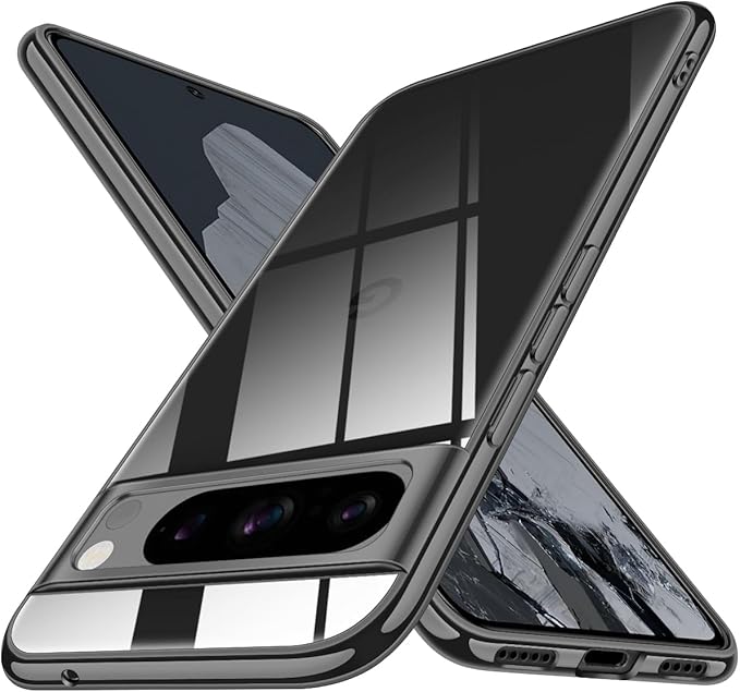Google 8 Pro 用 ケース クリア ピクセル8 pro 用 スマホケース 透明 ソフト tpu 8 pro 用 カバー 薄型 背面クリア 黒 ストラップホール付き 軽量 耐衝撃 人気 ブラック | KAZESHOP