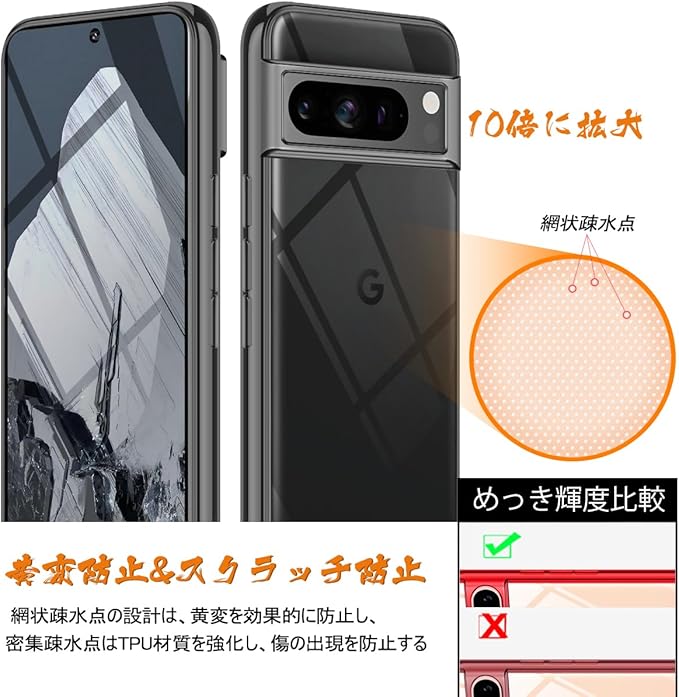 【高品質のTPU素材】 衝撃吸収、耐久性が最も良く丈夫な素材の一つであるTPUで作られております。クリスタルのようなTPUで、優れた保護力と特有の透明度でピクセル8pro 用 の美しさと感度をアップさせます。