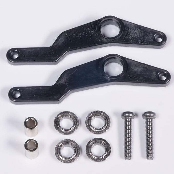 タミヤTT-02を2駆にし、フロントタイヤの切れ角をアップさせる2駆ドリコンバージョンキットのワイパーとベアリングセットです。 スペーサー・ビス・850フランジベアリング付き。 使用するにはピロ―ボールが必要です。ワイパーがスムーズに動き、ガタが出ないように適度なビスの締め具合で取り付けてください。