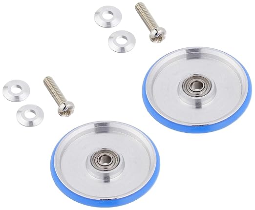 強度の高いディッシュタイプのアルミローラーにボールベアリングを圧入し、ブルーカラーのプラスチックリングを装着