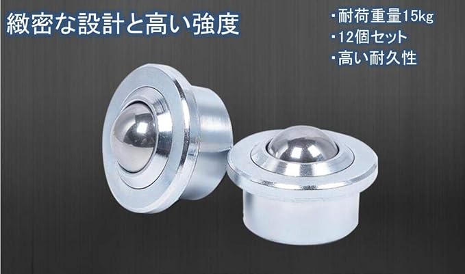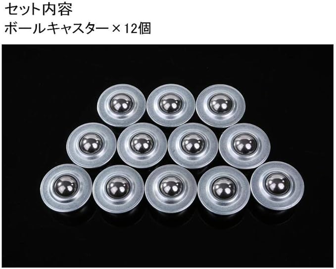 セット内容:ボールキャスター 12個 サイズ:全長32mm ボール径15mm 高さ20.5mm 材質:亜鉛メッキ、炭素鋼 重量:420g 耐荷重量:15kg カラー:シルバー