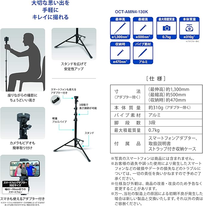 スマートフォンが使えるアダプター付き