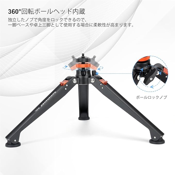 軽量で持ち運びに便利 - 耐久性の高いアルミニウム合金製で、重量はわずか440グラム。折りたたみ式デザインにより、Koolehaodaコンパクトカメラ三脚はスーツケース、バックパック、ハンドバッグに簡単に収納できます。