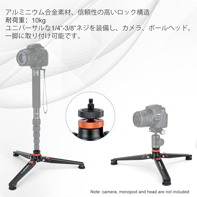 Koolehaoda ミニ三脚ベース 一脚用 アルミニウム製 卓上三脚、1/4 から3/8 ネジに対応したユニバーサル三脚マウント デジタル一眼レフカメラ、一脚、ボールヘッド、延長ポール、自撮り棒に対応 | KAZESHOP
