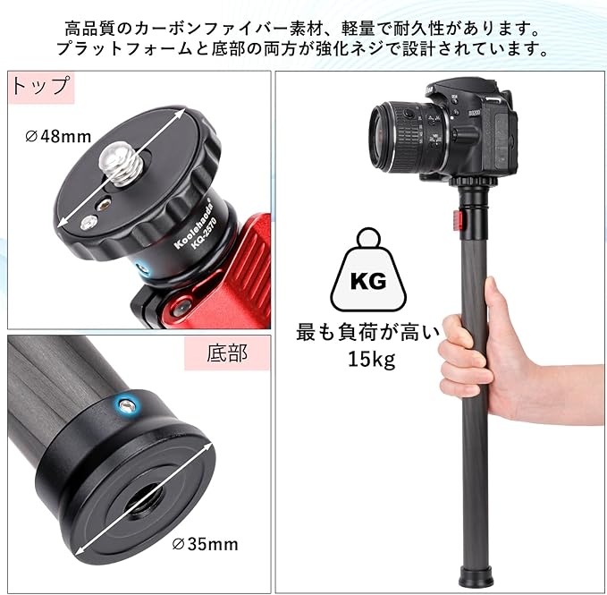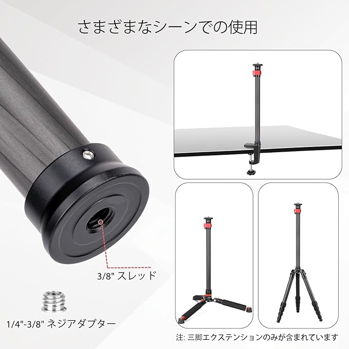 Koolehaoda 70cm延長ポール 三脚センターポール カーボンファイバー製 2段階伸縮三脚延長チューブ 1/4-3/8"ネジ付き 三脚/ジンバル/カメラ対応 最大荷重15KG | KAZESHOP