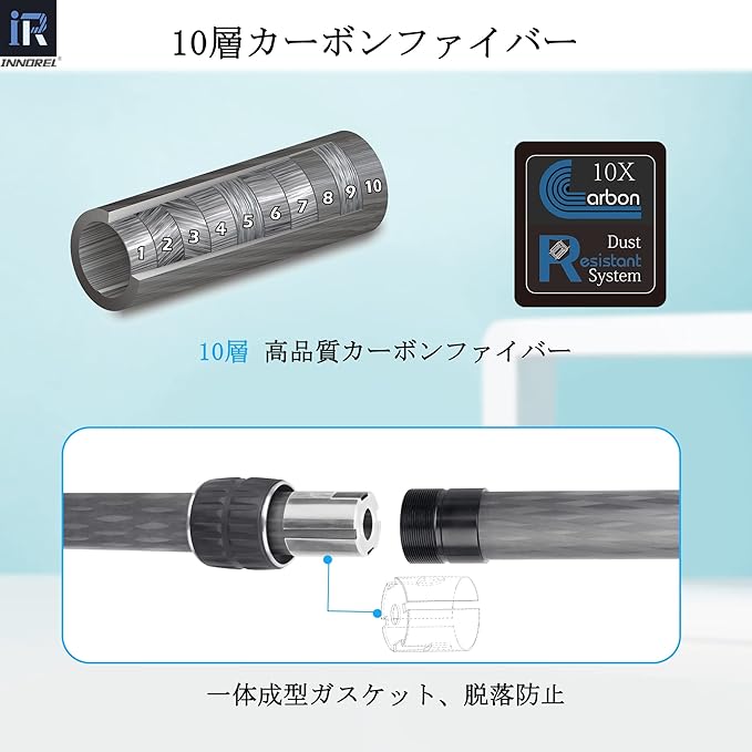 【高品質】センターポールのパイプが10層カーボンファイバーで作られ、軽くて頑丈です。最大30kgまでの荷重性能があります。